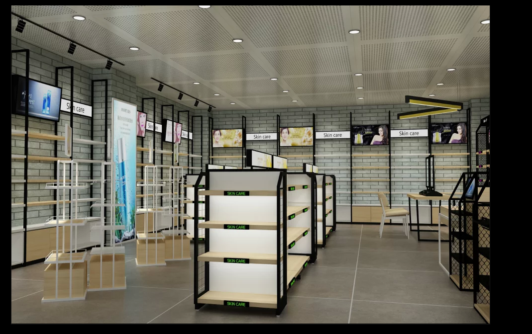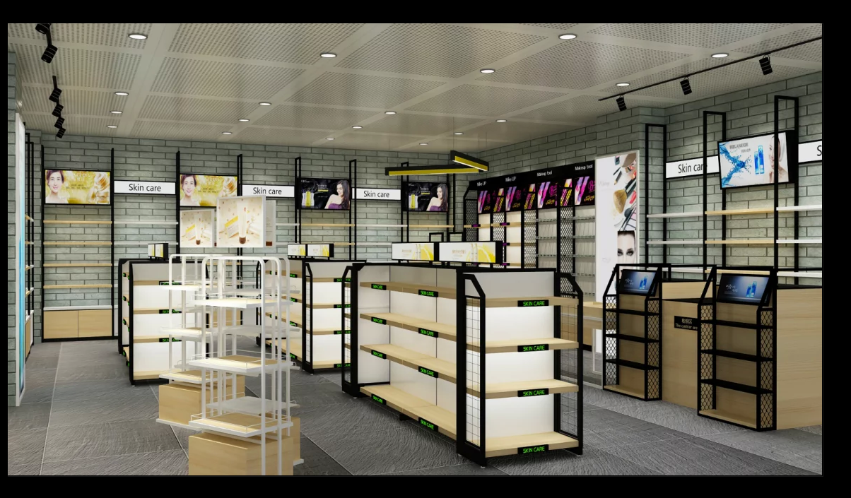 化妝品貨架的尺寸可設置為900*350*2400mm,具體規格按照客戶需求定制.